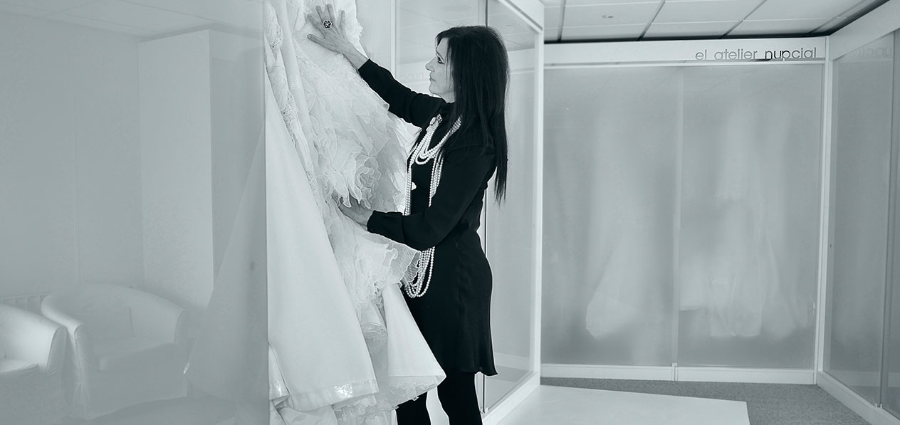 Yolanda García diseñadora de la tienda EL ATELIER NUPCIAL tras 25 años de experiencia en el mundo de la moda nupcial, abre una nueva tienda en Zarautz , donde reúne a los mejores diseñadores, con los que personaliza el vestido final de cada novia.